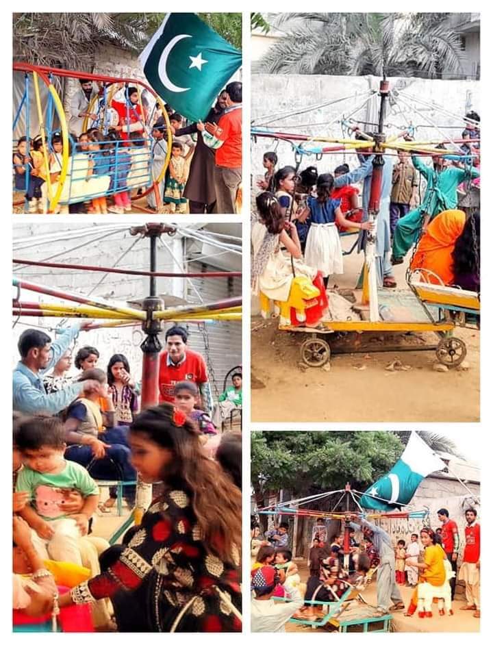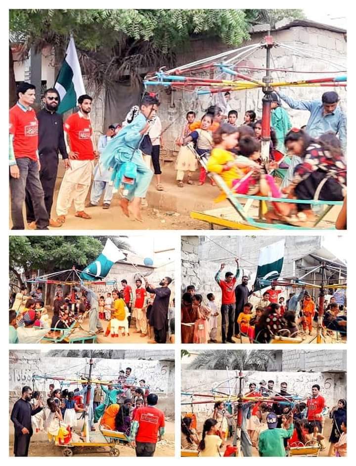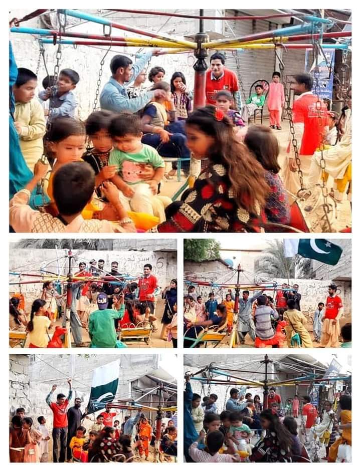 الحمد للہ 3 مقامات پر ٹیم سرعام گلشن اقبال ٹاؤن کراچی کے جانبازوں نے غریب آبادیوں میں جا کہ بچوں کے لیے فری جھولوں کا انتظام کروایا۔