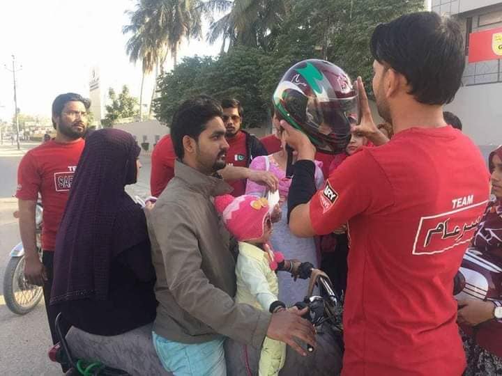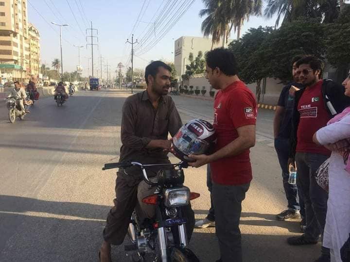 29 Jan 2018. Helmet Distribution Activity by North Nazimabad Town, Karachi.