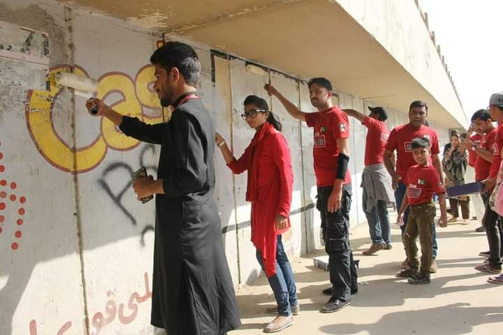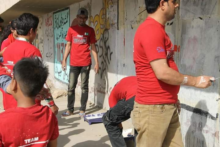 Members of TeamSareAam North Nazimabad Town removed wall chalking from the Bridge At Nazimabad Near Eid Gah Ground. Also painted our National flag.